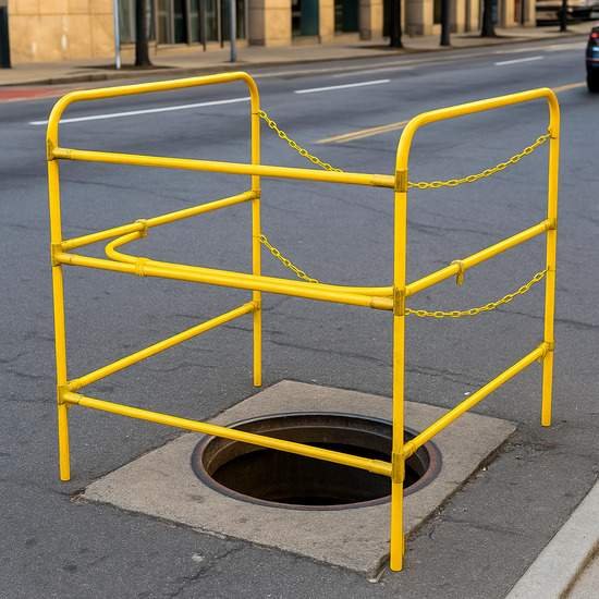 Manhole guards create a temporary barrier to prevent access to open manholes, and keep traffic and pedestrians away from underground facilities. This aluminum, all-yellow manhole guard is a CONED Approved device.